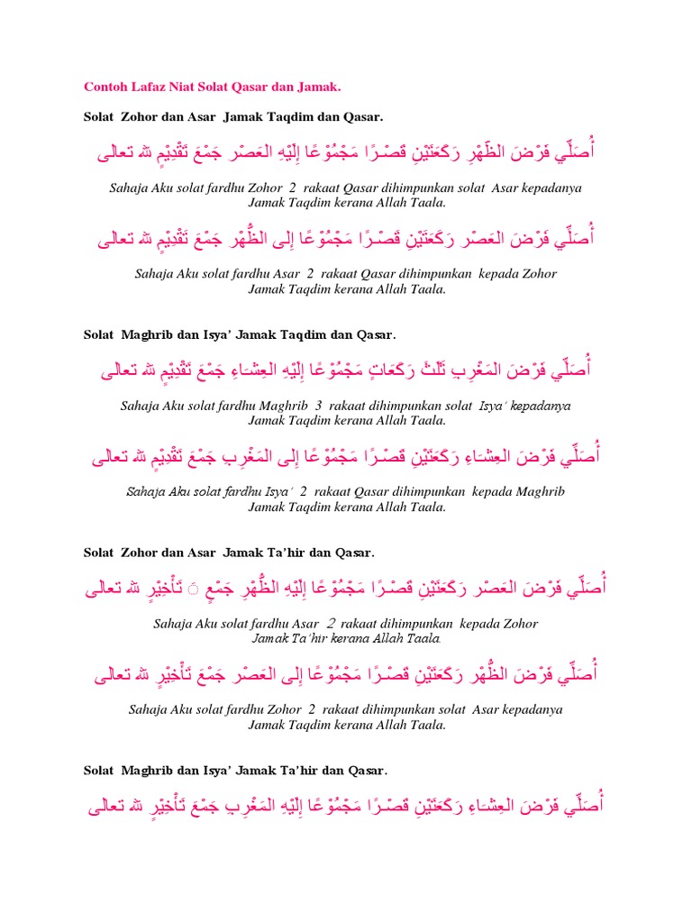 Contoh Lafaz Niat Solat Qasar Dan Jamak Pdf